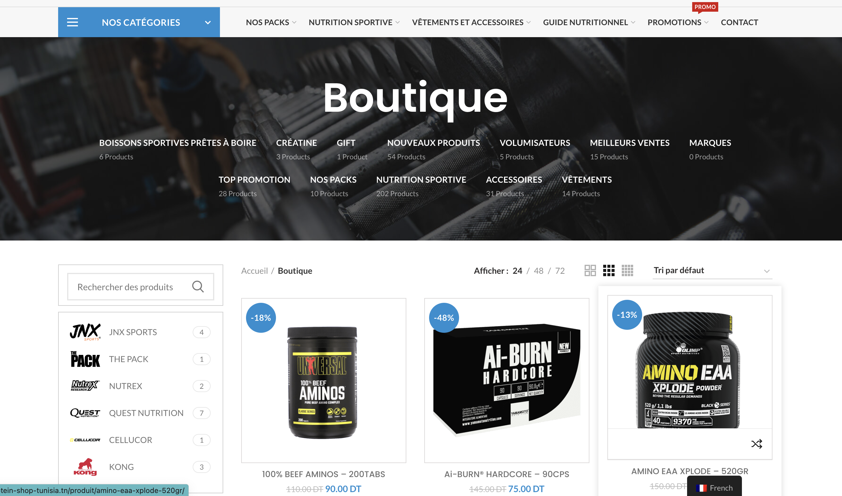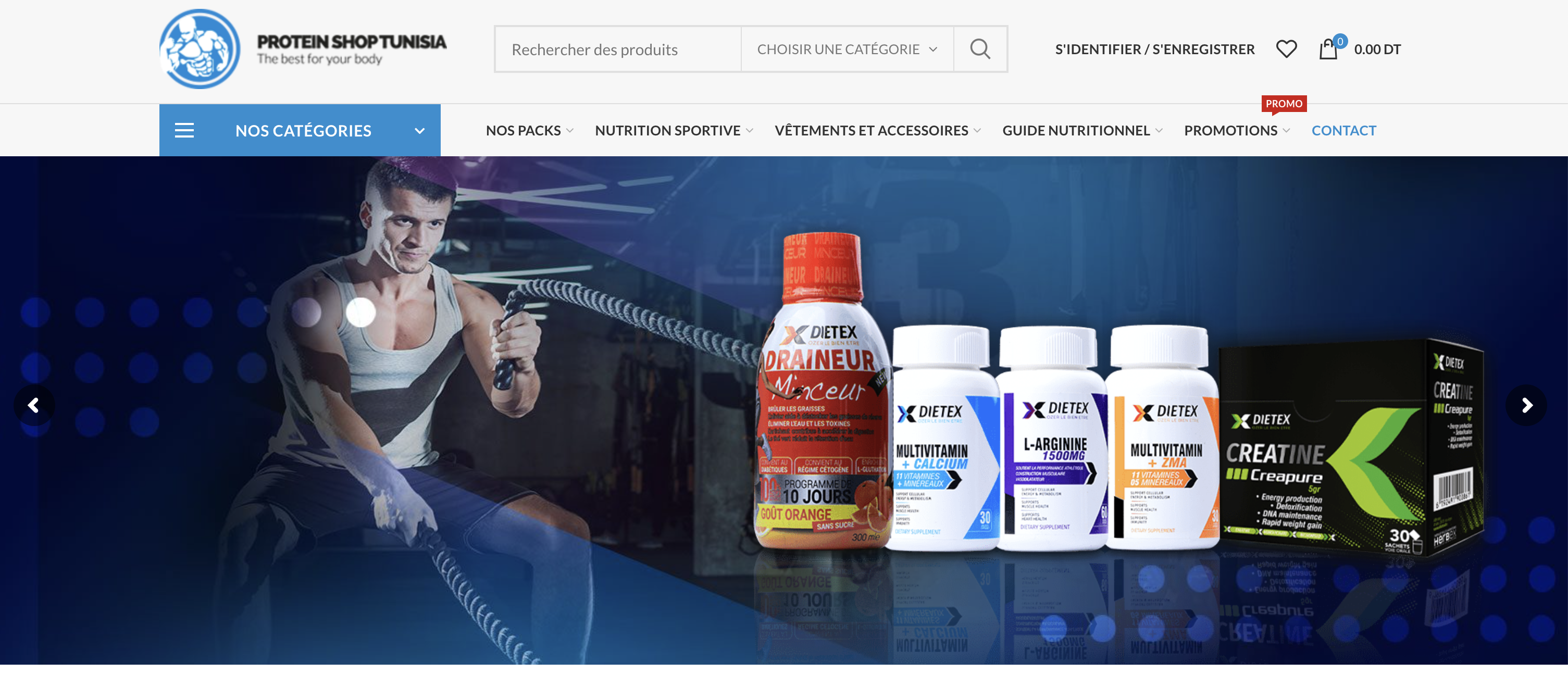 Pour Protein Shop Tunisia, boutique en ligne dédiée aux compléments alimentaires, vêtements et équipements sportifs, nous avons développé une plateforme qui incarne la performance et la motivation. Ce site met en avant des marques de renom comme Yamamoto Nutrition et des produits phares tels que les protéines whey, les gainers, la créatine et bien d’autres.