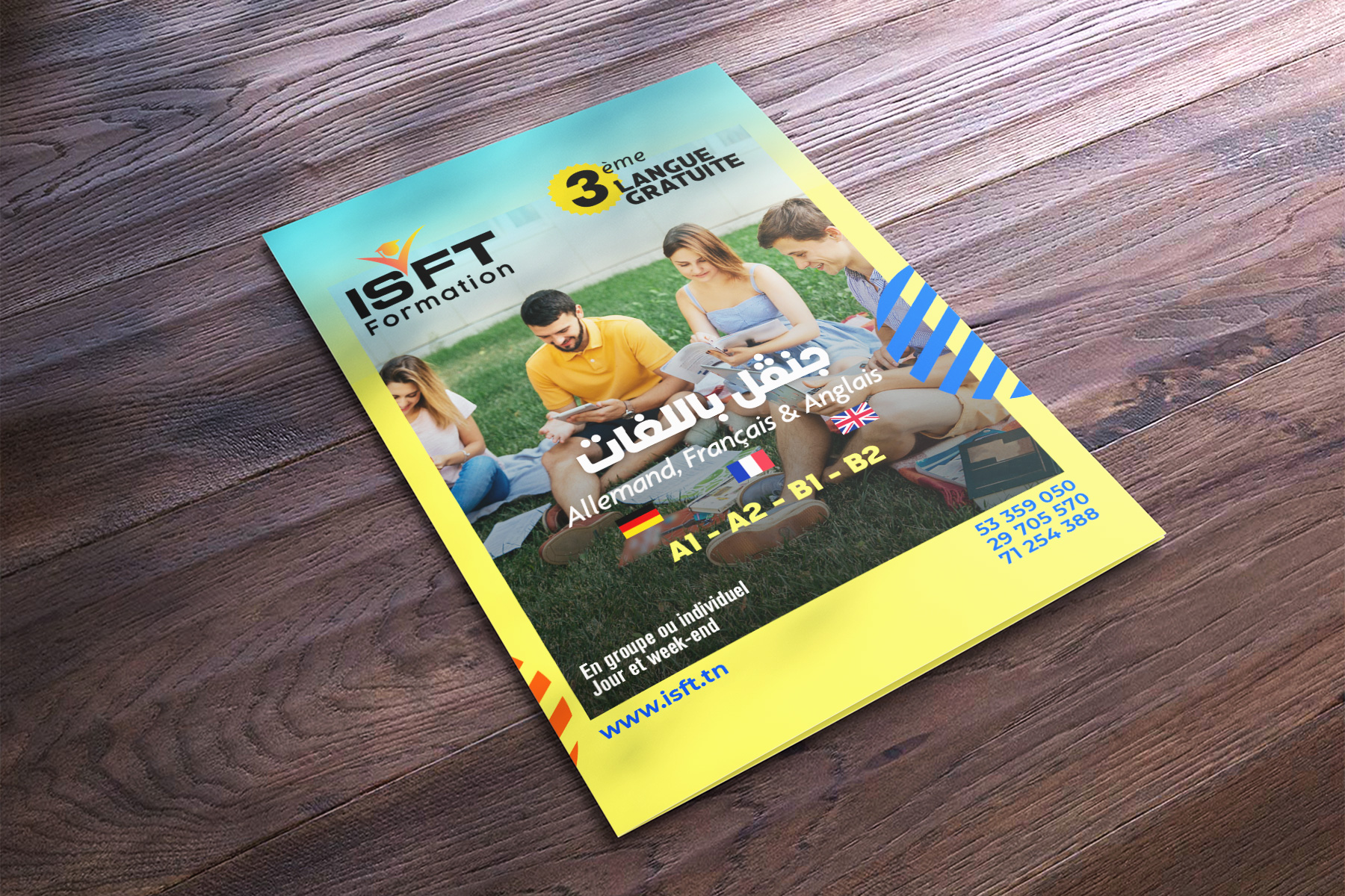 Chez Web Media, nous avons collaboré avec ISFT pour créer un flyer percutant, mettant en avant son expertise en formation professionnelle dans des domaines tels que le BTP, le BTS et les formations accélérées. Ce support a été conçu pour refléter l’excellence pédagogique et attirer efficacement les futurs apprenants.